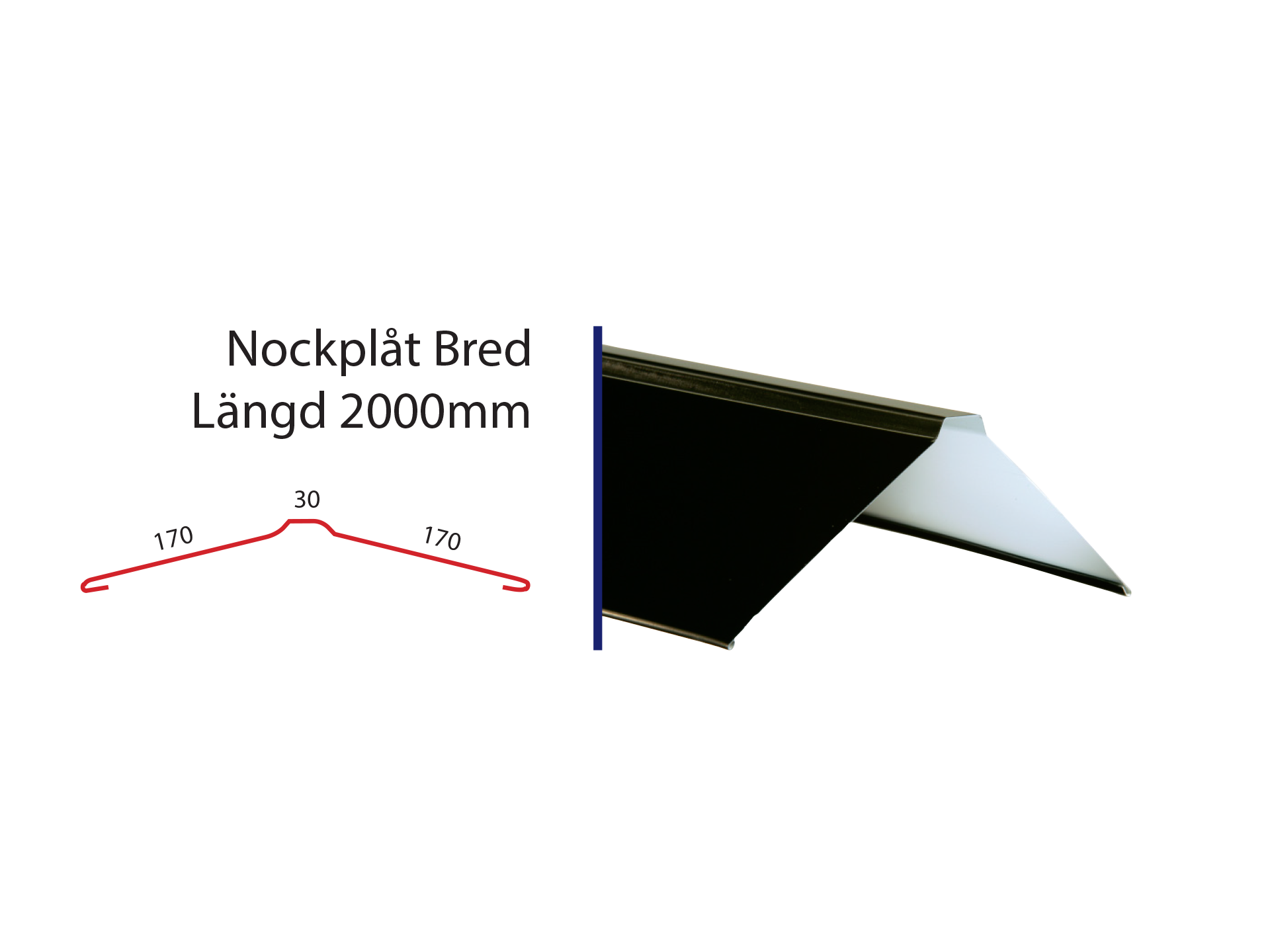 Högst upp på nocken av ditt tak möts takplåtarna från båda sidor av taket. För att täta springan behöver du montera en nockplåt. Glöm inte att komplettera med tätningsband och nockpanna för en säker och tät lösning som håller länge. Nockplåten kan även monteras på KBP Exklusiv takpanna om du behöver en nockplåt för mindre taklutningar.