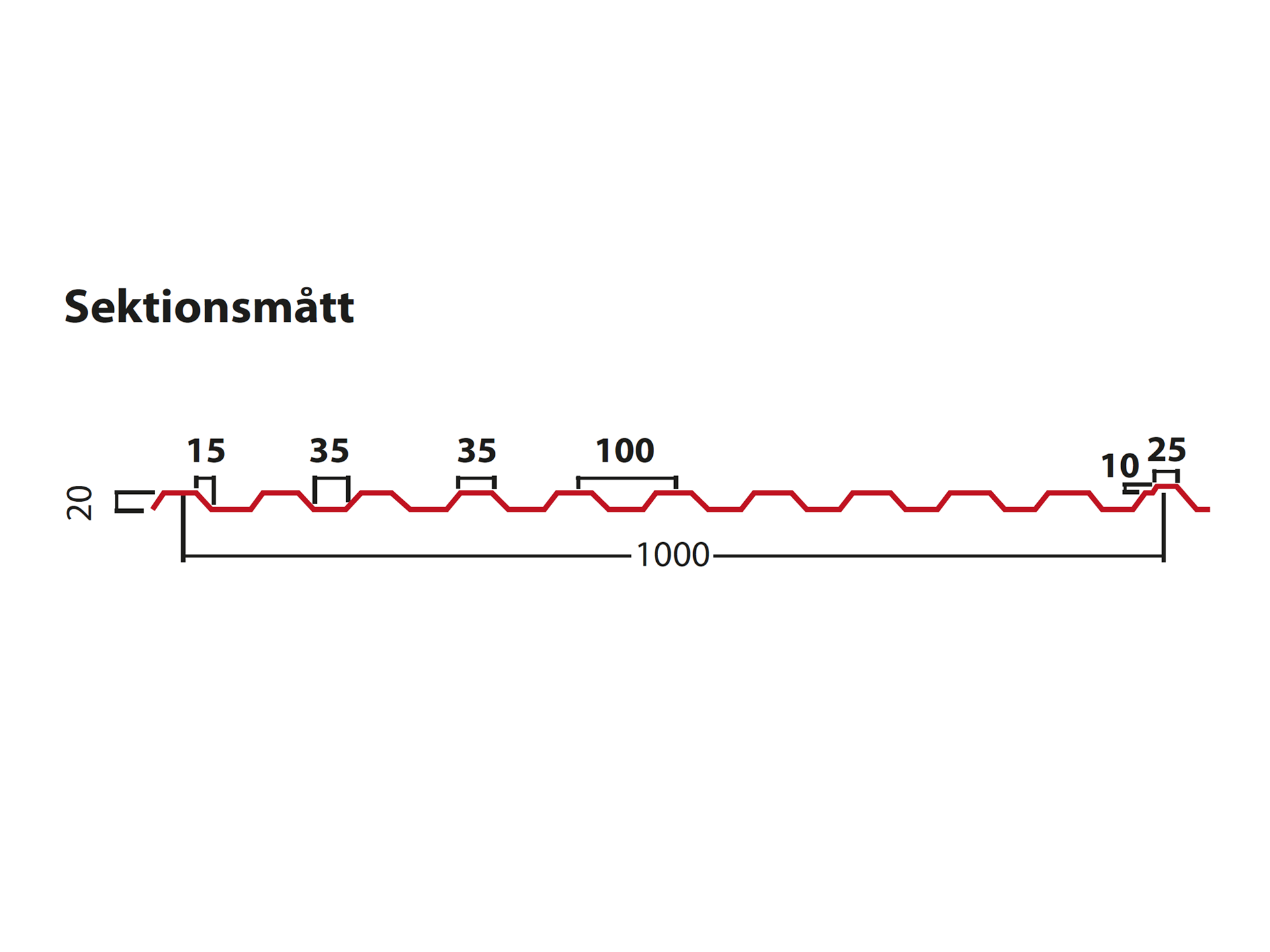 KBP 20 är en prisvärd plåtprofil anpassad för tak och väggar. Utformningen skapar en stark och motståndskraftig plåt. KBP 20 kan måttbeställas utifrån dina egna önskemål.